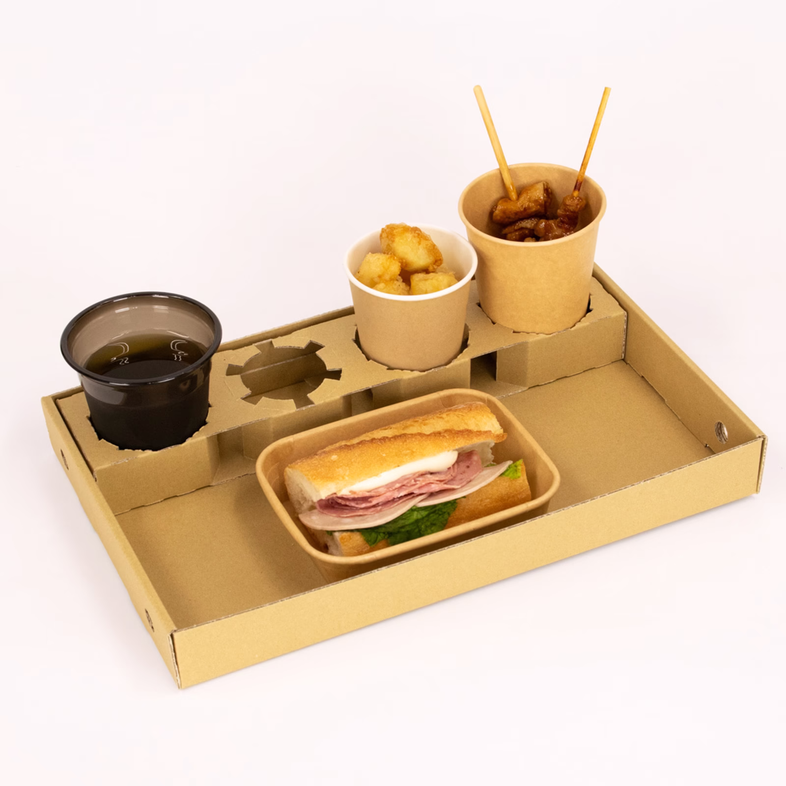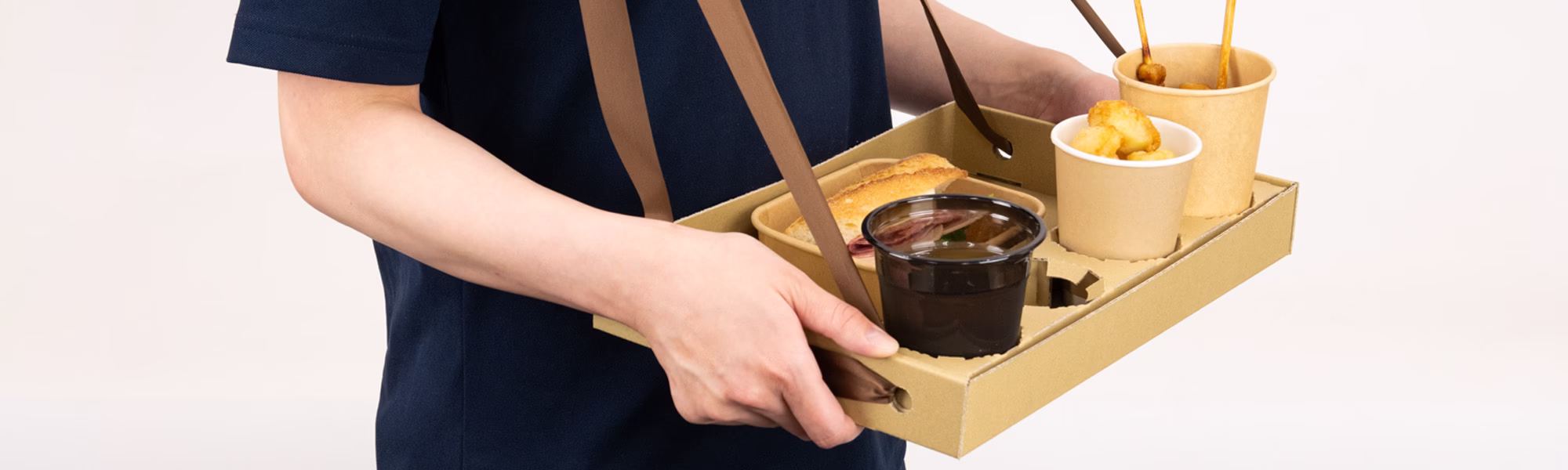 飲食イベントでの「困った……」を解決する「両手がフリーになるフードトレー」です。