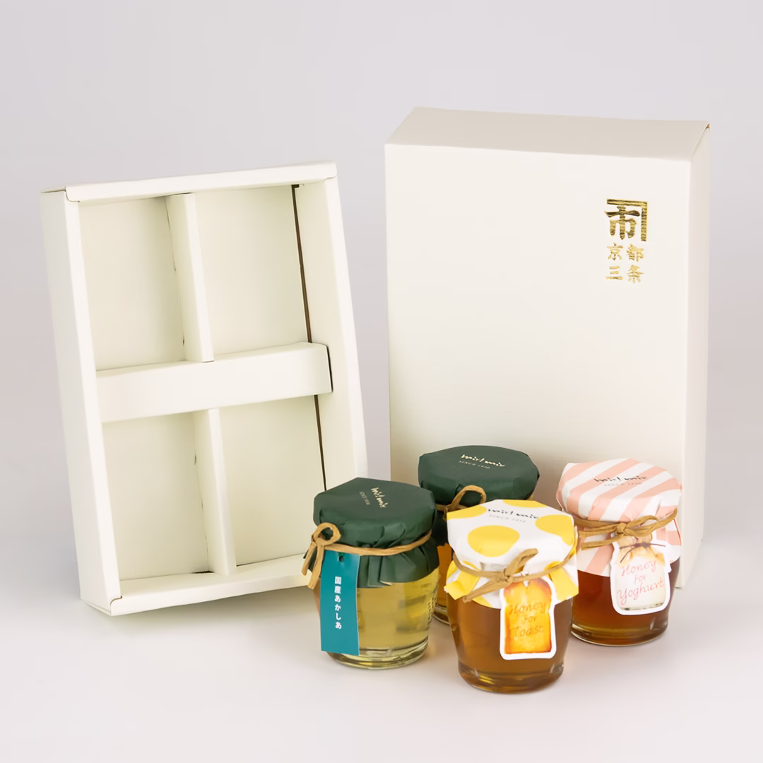 ホーム 制作事例 蜂蜜用パッケージ(4個入)公開日・2025年11月19日 蜂蜜用パッケージ(4個入)株式会社金市商店 / 蜂蜜専門店ミールミィ 様株式会社金市商店 / 蜂蜜専門店ミールミィ 様 のご依頼で、蜂蜜用パッケージ(4個入)を製造いたしました。制作事例一覧へ その他の事例「Futarinomi(ふたりのみ)」発送用ケースピザケース(ワンピース用)クラフト缶ビール手提げ6本オリーブオイルパッケージ