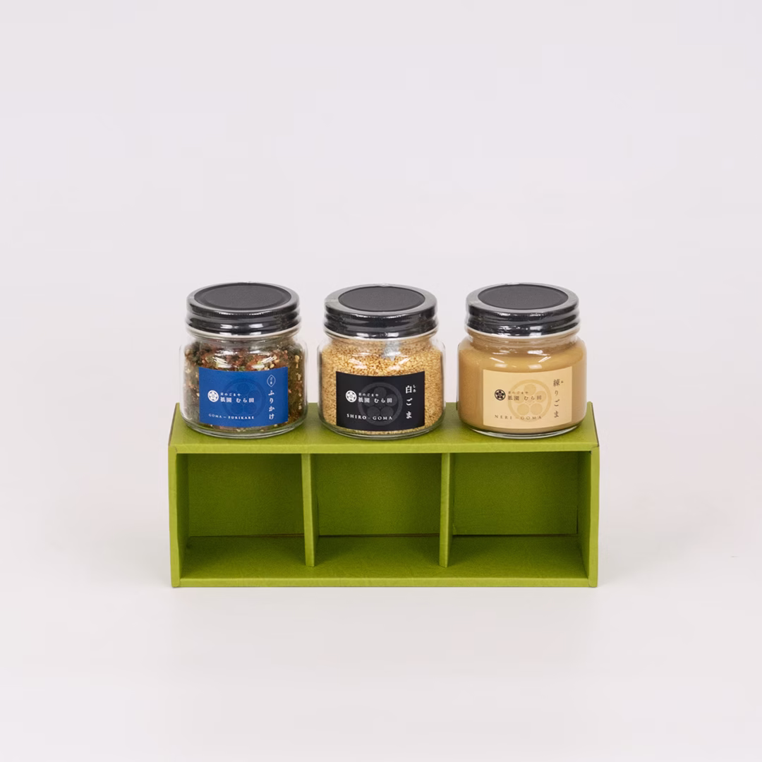 京のごまや 祇園むら田 様のご依頼で、ギフトボックス2種(瓶小3本入/瓶特小3本入)を製造いたしました。
